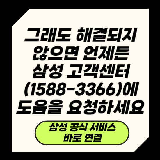그래도 해결되지 않으면 언제든 삼성 고객센터(1588-3366)에 도움을 요청하세요.
